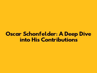 Oscar Schonfelder: A Look At His Impact
